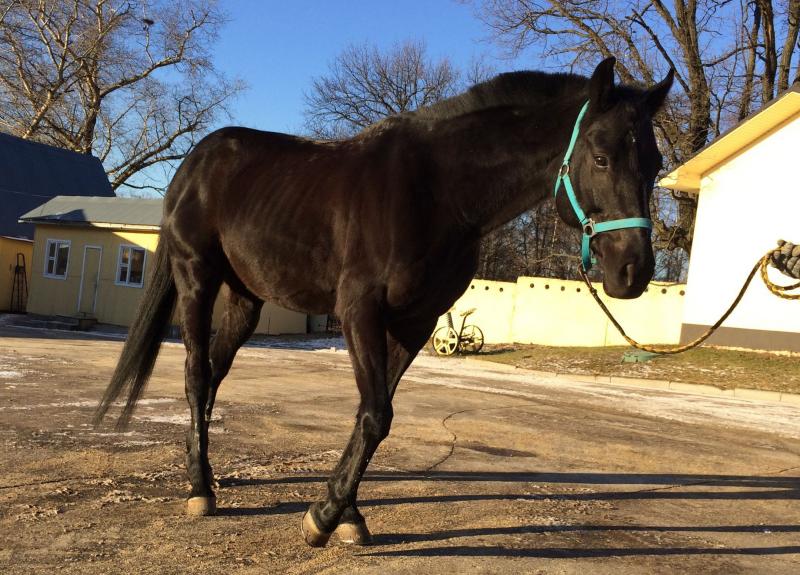Продается в хорошие руки очень нарядный вороной жеребец, 10 лет, английской чистокровной породы. Высота в холке 161. Подходит для прогулок в лес, поле. Ничего не боится, работал в джигитовке, выступал. Добронравный, послушный. Не для новичка. Очень хорошие аллюры. Подходит как в выездку, так и в конкур. Напрыган до 80 см. Можно выше, специально не напрыгивали.