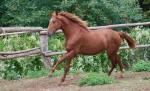 Levante also has a big advantage of being handled daily since we bought him last summer. He has done everything imaginable - swimming in the lake, walking in the woods on long nature walks in hand alone or with another boy, free jumping, gentle groundwork, some gentle lounging, he has had saddle and rider on his back but only for a very brief time to get him accustomed to it but not more due to his young age still. He has taken to all of this as a pro, we never ever had an issue with him. He is so easy and incredible in his character, very calm, safe, affectionate towards people. The local children pet him and run around him all the time, see video attached. This video was taken when he was 2.5 years old and we did it in a way to show how Levante handles new things - most of these things were done with him for the very first time! You can also see more photos and videos on our website www.yeguadad.com. Levante is now living with 7 other boys of various ages without any issues on 7 hectare pasture and is always very happy and very loving.