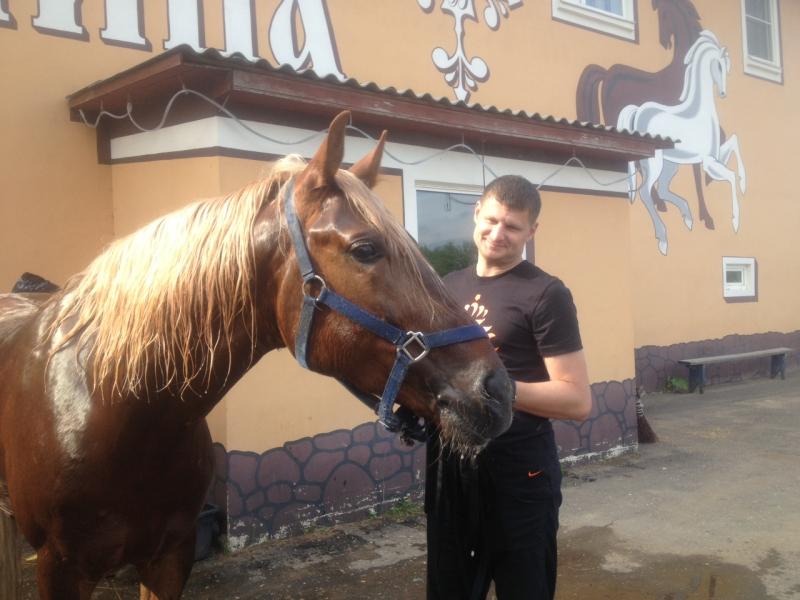 Очень активный жеребец.Был выкуплен с мяса,документов никаких на него не имеется.Заезжен под седло,но последние месяцев 8-9 в седле не работал,только на корде.