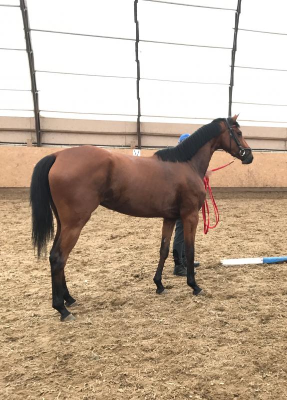 не заезжена, готовится к заездке, работает на корде,прыгает в шпринте и много гуляет, приучена ко всем манипуляциям.