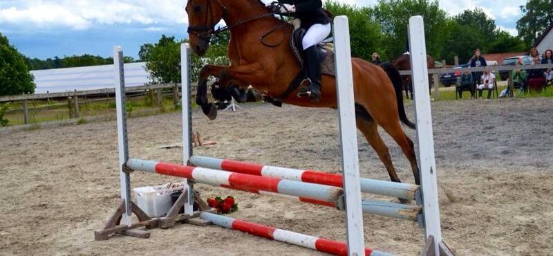 He has a super jumping technique and can make small quick turns. He jumps mb. Has with previous owner jumped la ** for competitions. He also has placements in jumping.